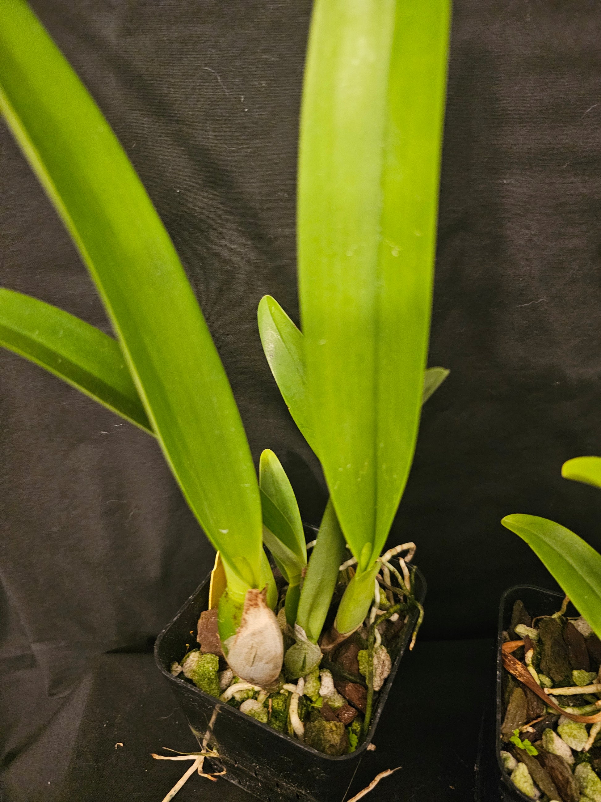 These are nice blooming size plants of a remake of Mem Dollie Mckinnon. These plants have 2 very nice clones that were used to create these plants. The dark form of tenebrosa was used. I expect these blooms to look just like the bloom photo representation. Photo credit goes to the photographer and was used with permission. These plants are growing sheaths and I expect them to bloom later this year.