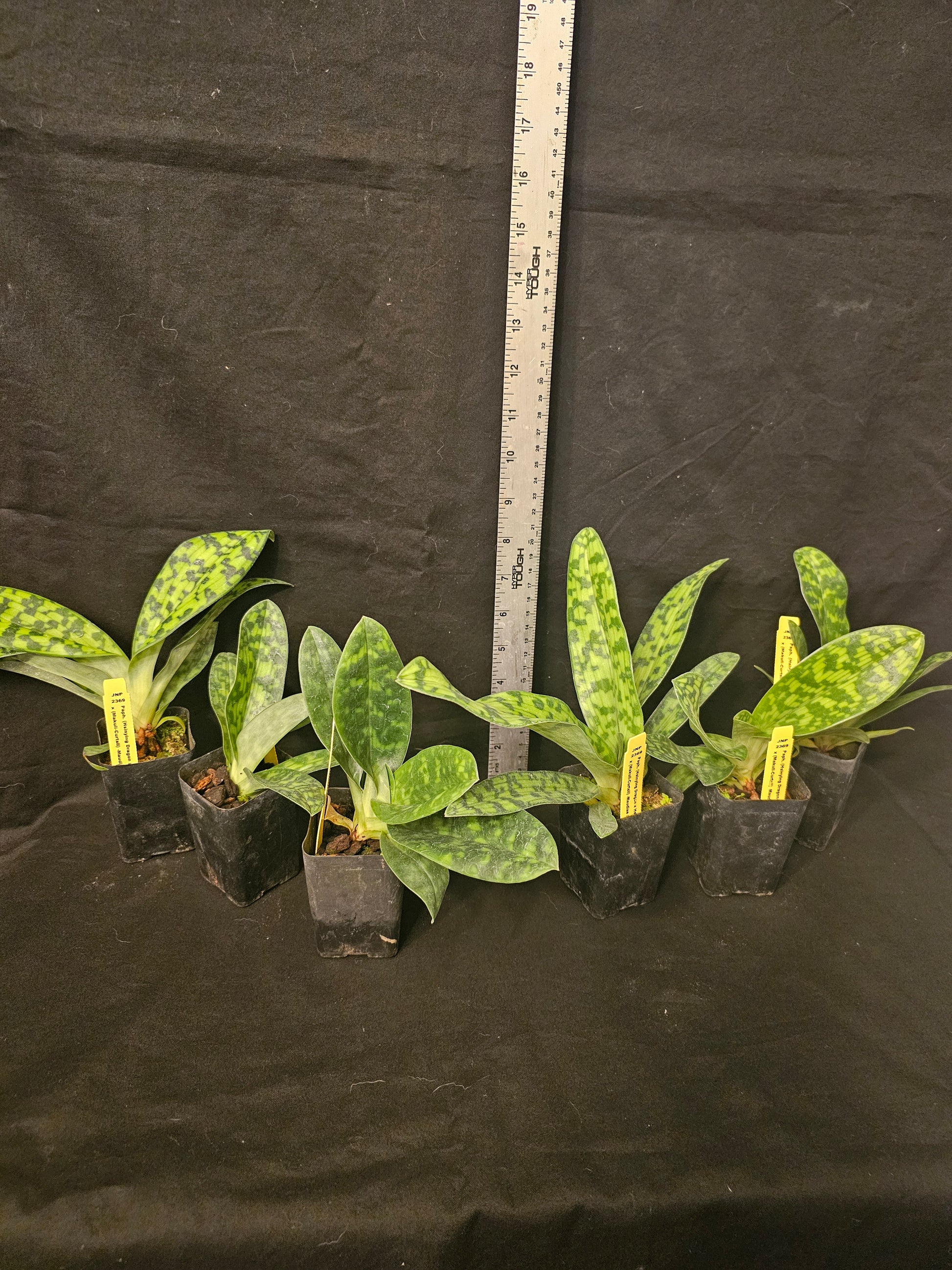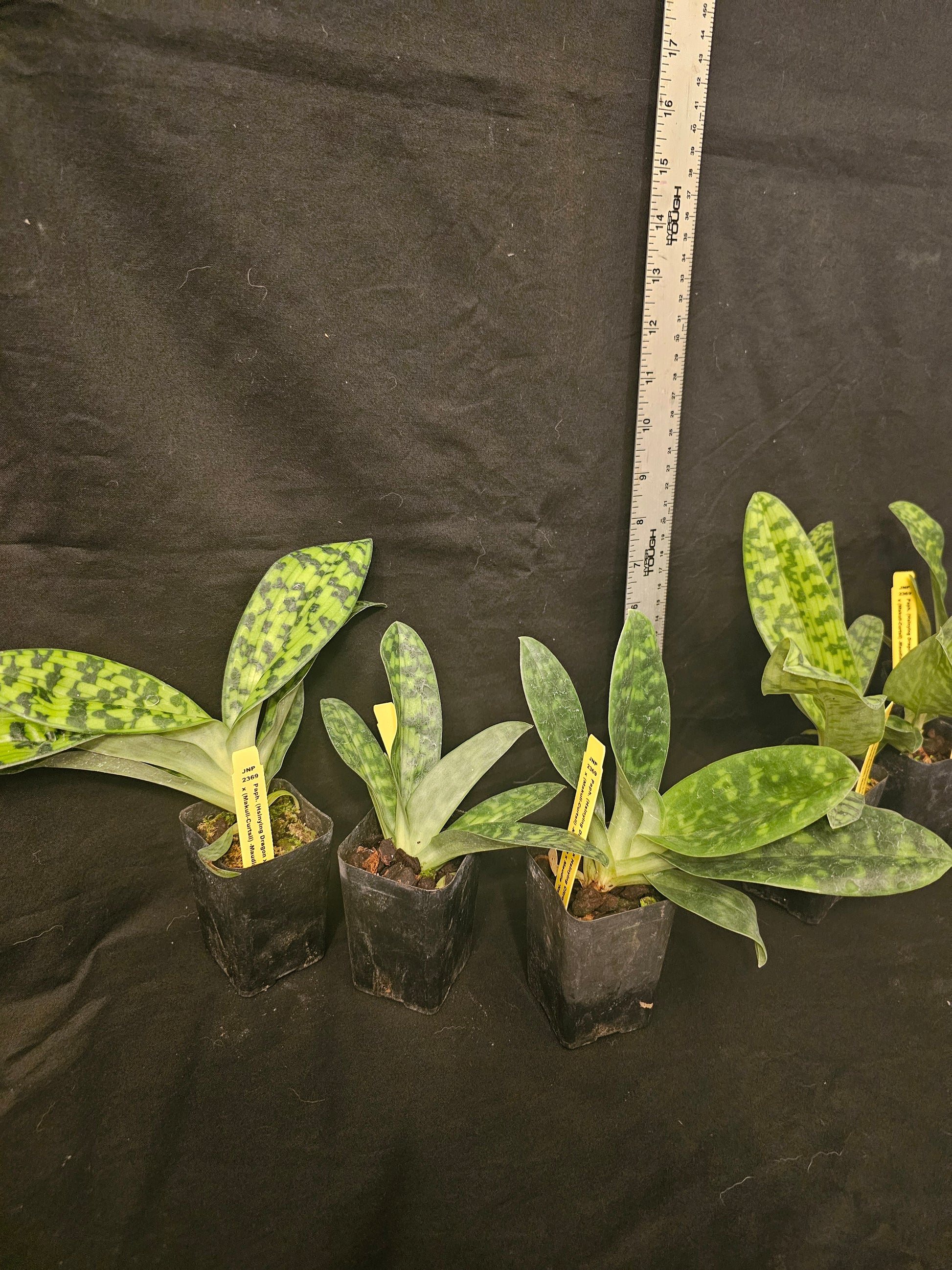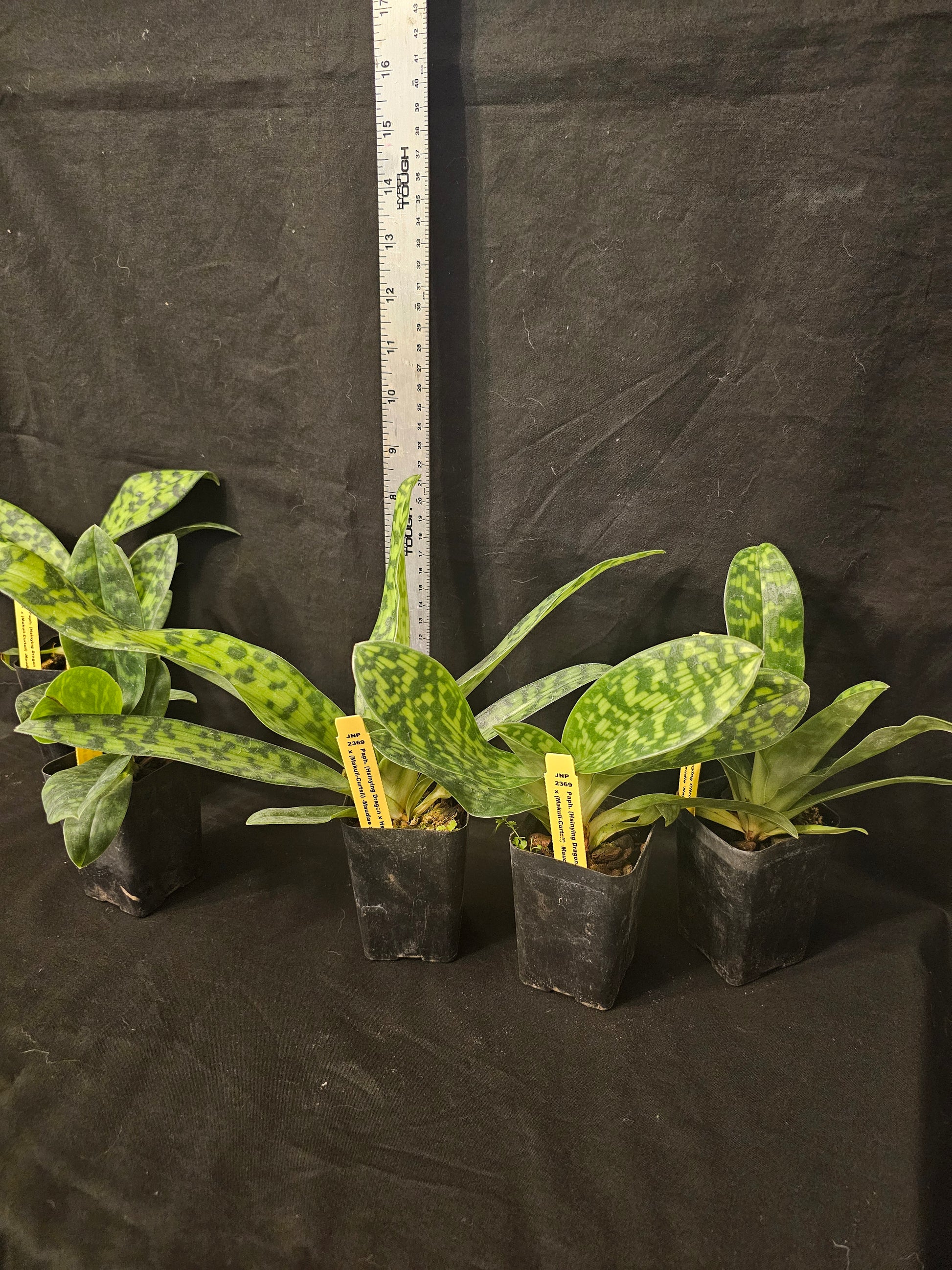These plants are near blooming size plants in 2.5" pots. These will produce attractive long lasting green Maudiae Slipper blooms. They have attractive mottled foliage with green and white blotches throughout the leaves and are attractive even when not in bloom