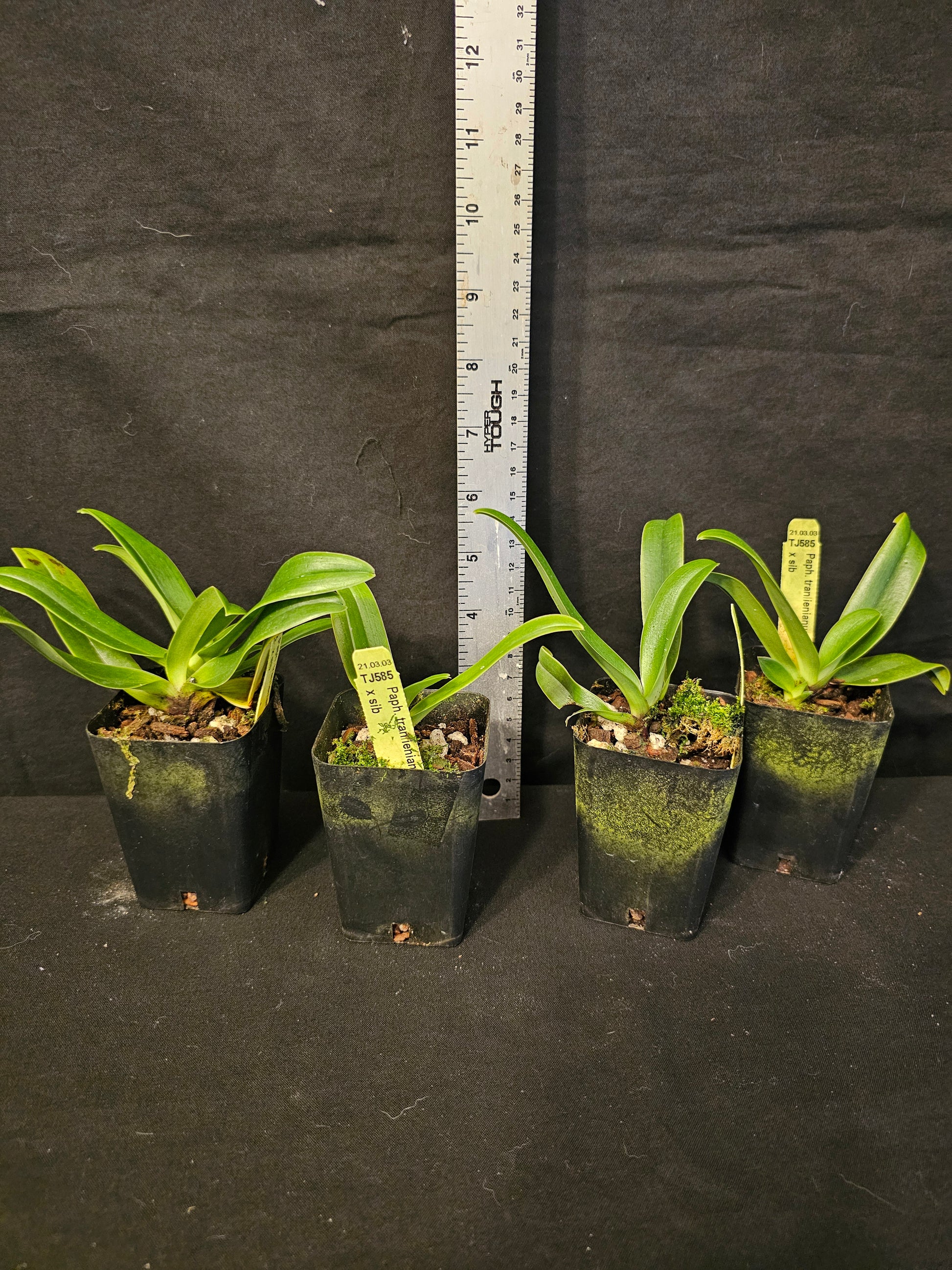 These are blooming size plants in 2.5" pots. This species will produce unique slipper blooms with wavy corrugated petals.