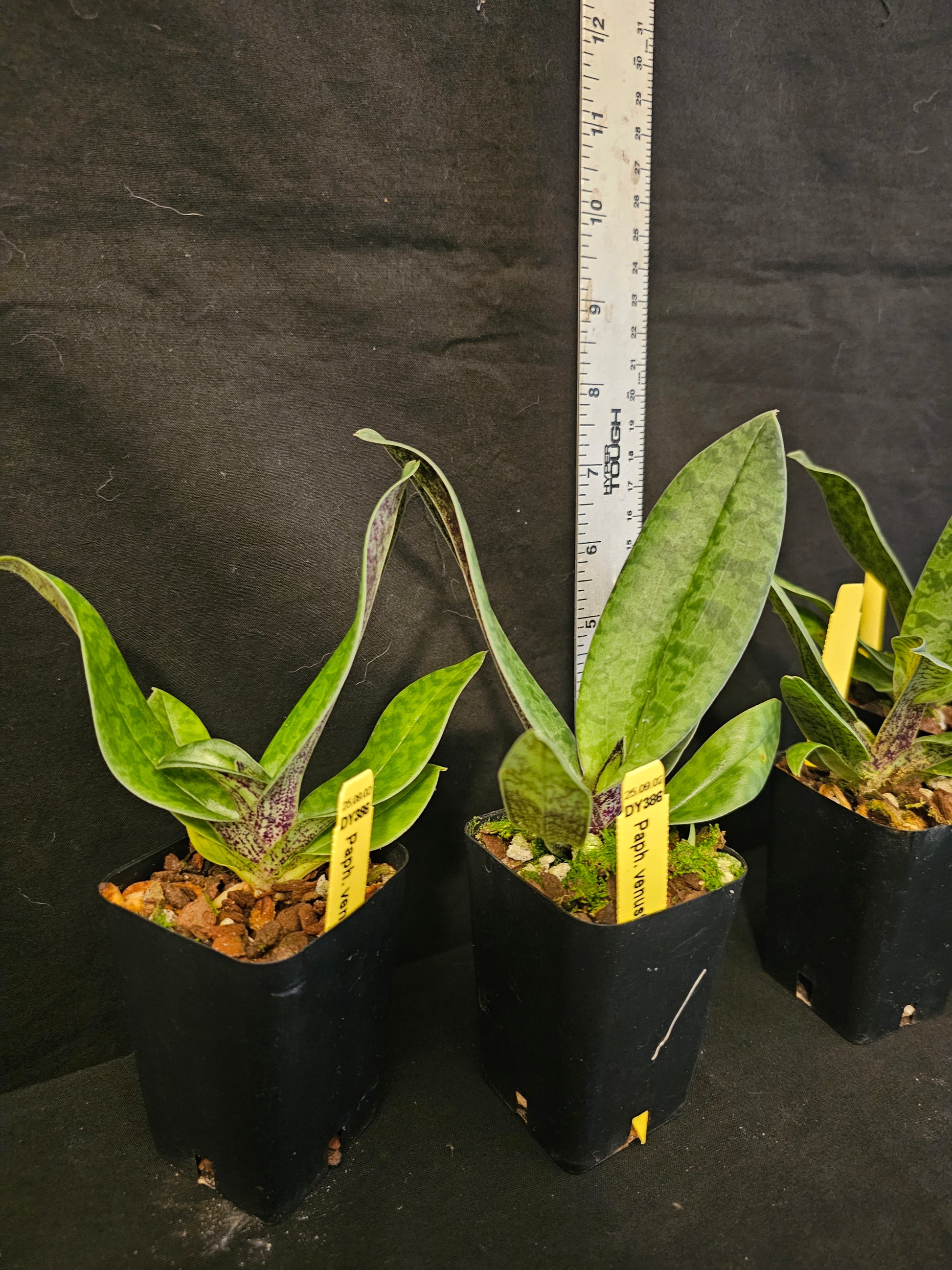 These are nice healthy bloom size plants in 2.5" pots. These plants have beautiful mottled foliage that is attractive even when not in bloom. These produce very attractive multicolor blooms with unique and attractive veining on the pouch. These are easy to grow plants that like to stay evenly moist but not soaking wet.